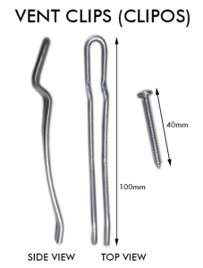 Set of 4 replacement vent clips. Old style with screw. Suits metal neck adaptors.